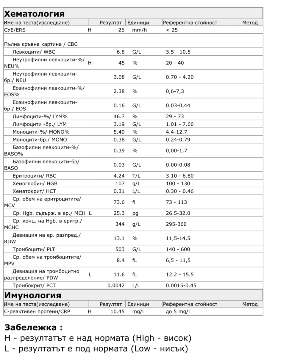 Внимание ! Лабораторните резултати не са диагноза, а основание за такава. Приемането на каквито и да било лекарствени средства без лекарско предписание, може да бъде опасно за вашето здраве. Обръщайте се за тълкуване на резултатите само към квалифициран лекар.