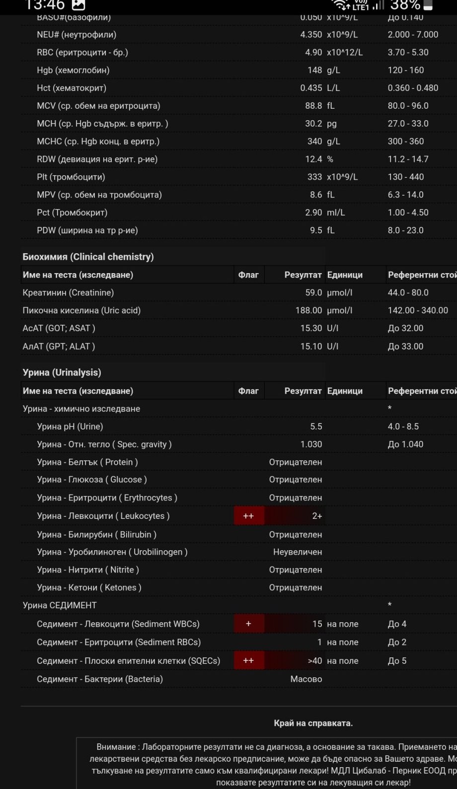 Моля за мнение какво означава този нисък тромбокрит в комбинация с леко завишените гранулоцити?