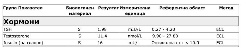 Да помоля за тълкуване резултатите на мъжа ми. Според ендокринолога има ИР, започна диета преди месец и половина, трябва да започне и спорт. Цигари не пуши, пие 90-100 мл розе вечер. Няма наднормено тегло. В момента приема витамин Д, тестостерон и продукт за регулиране на кръвната захар.