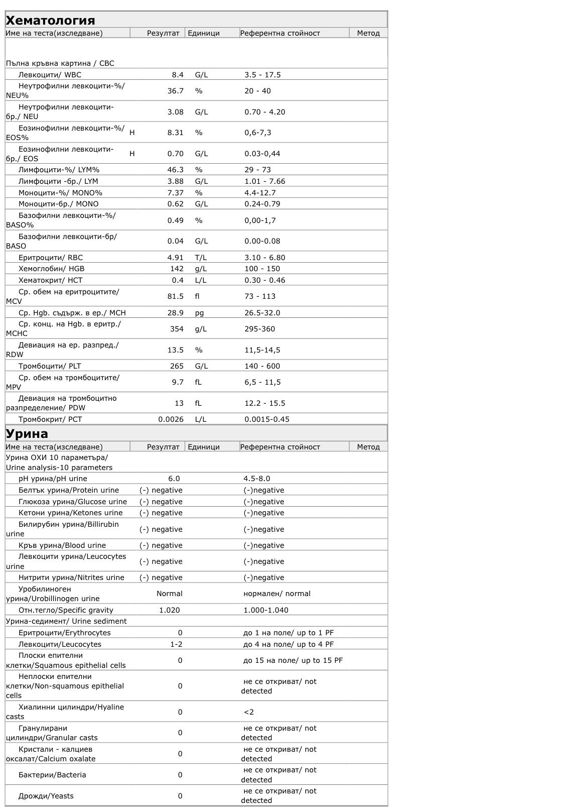 Левкоцити в урината отново високи 10 при норма 4, Хематокрит в кръвта леко завишен. Уж всичко е нормално, а ме боли.