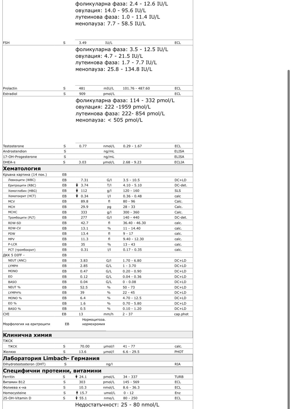 Включвам се и аз, пролактинът ви е висок. Почивахте ли преди изследването?