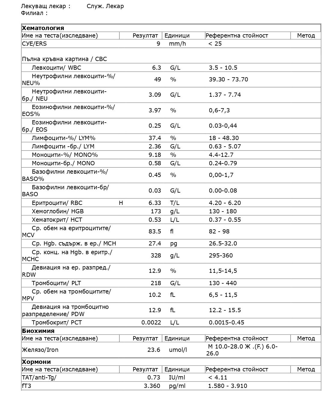 Също се посъветвах с хематолог, понеже наблюдавам сравнително чести леко болезнени усещания по шията и врата и мисля че е промяна в лимфата. След физически преглед, хематологът каза че не усеща нищо и няма проблеми. Назначи ми само изследвания на вит. Д и Б12.