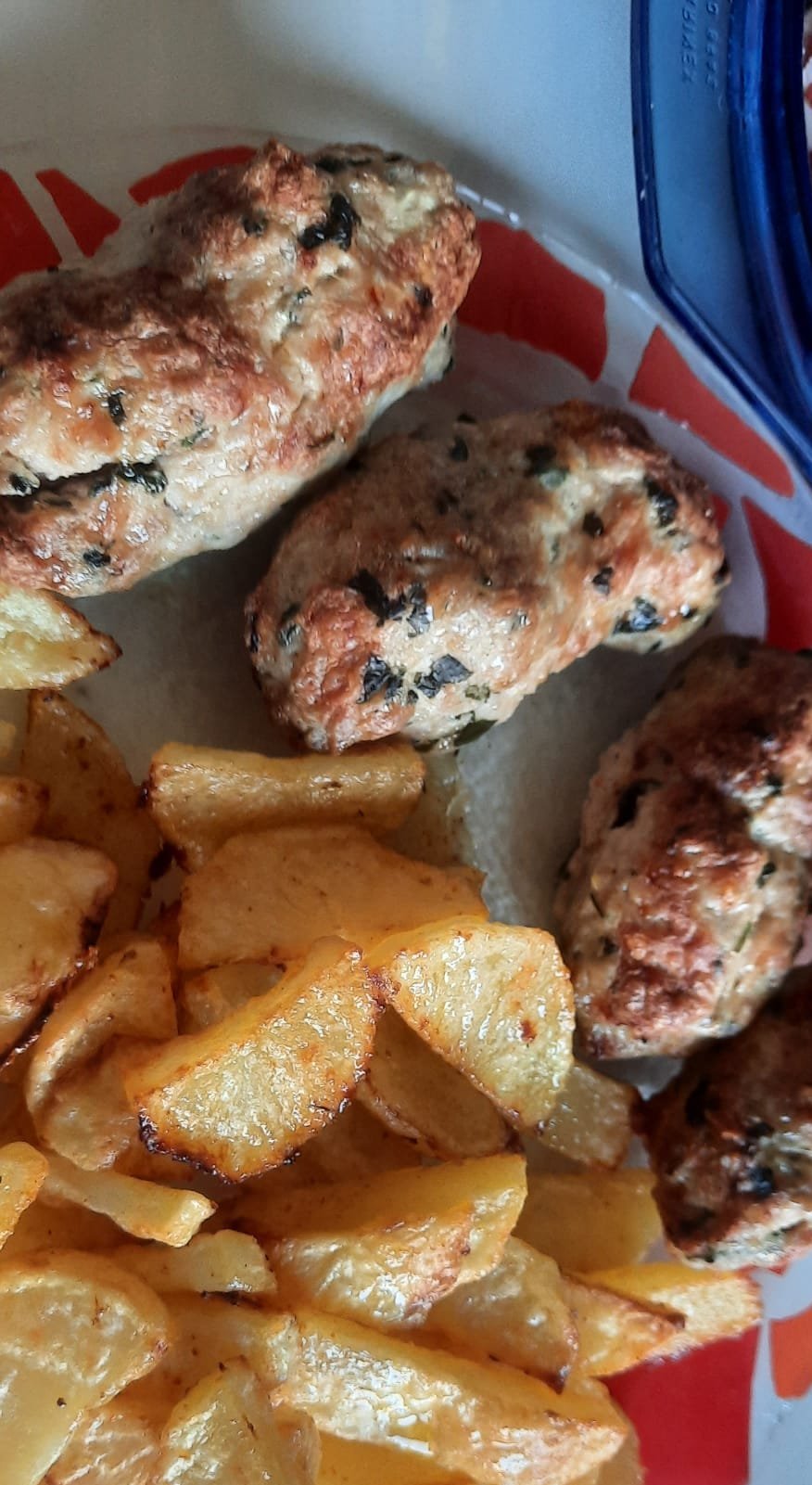 За втора поредна вечер детето иска картофи "соте". Сварени за 15-20 минути на котлона и после върху хартия за печене, леко омазнени и с подправки във фраера ( фурничка) на 200°С за 15-20 минути