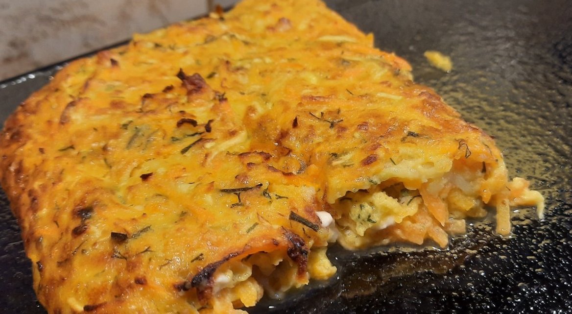 тиквички с моркови и подправки,сирене , яйца и опа