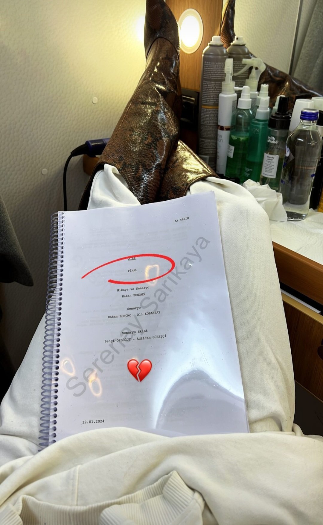 Късно през нощта Серенай на снимките на епизода преди финала на Aile . 💥