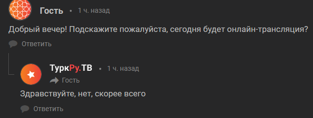 "Добър вечер. Поскажете моля днес ще има ли онлайн превод?
