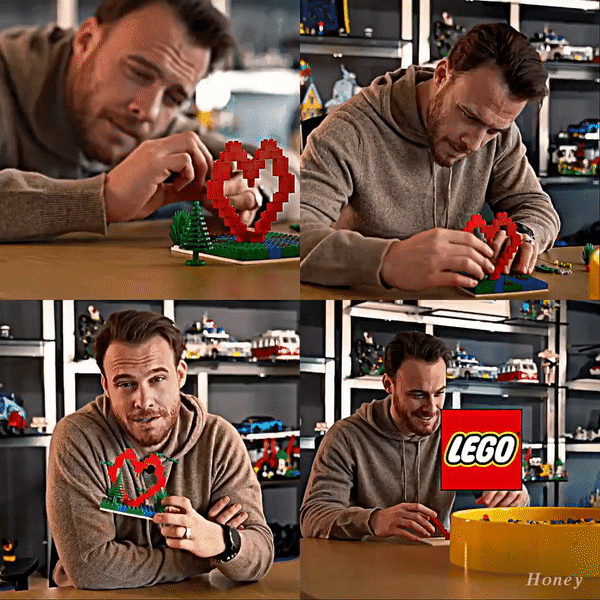 "#KeremBürsin x legoturkey Предоставянето на суперсилата на играта на децата, които имат най-голяма нужда от нея, е изключително лесно: постройте сърце с части LEGO и го споделете с етикет #BuildToGive"