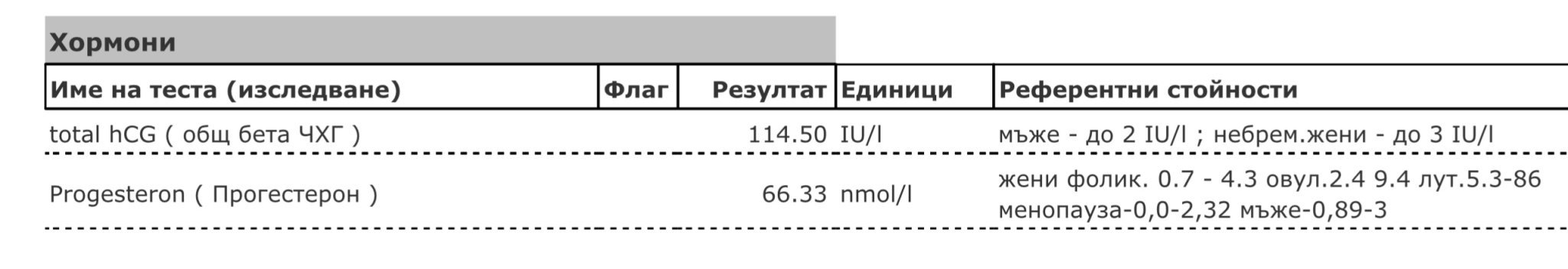Трябва да има референтни стойности за 1,2 и 3-ти триместър. Мисля, че този прогестерон е ок за начална бременност.