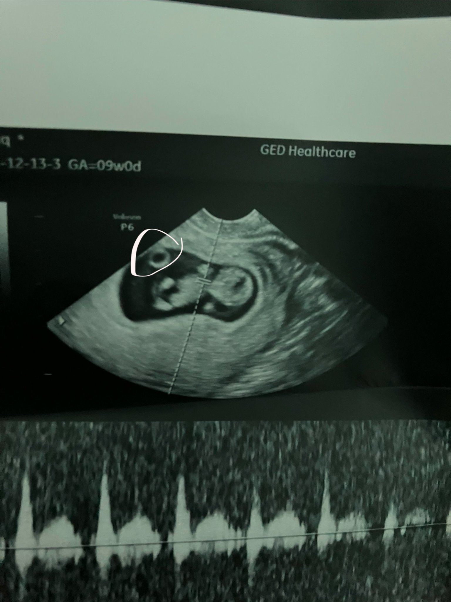 Нещо... Има си бебенце, това му е жълтъчното мехурче, нормално е да е там. Пийте си лекарствата и по-спокойно.
