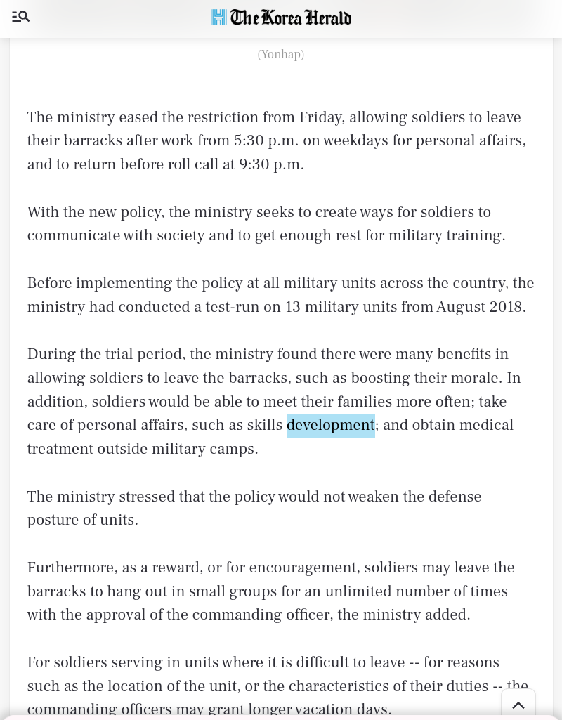 Промените в корейската армия включват по-различен начин на обслужване, като някои си отслужват съвсем активна военна служба, докато други предпочитат по-краткото време на служене. Всъщност членовете на BTS следват стъпките на близкия си приятел Парк Хюн-сик, който е служил в специални части. Например, ВИ е повишен в лидер на взвод в обучителен военен лагер. Тези промени са важни, тъй като влияят върху начина, по който айдиолите изпълняват военната си служба и могат да повлияят на кариерата им след това.