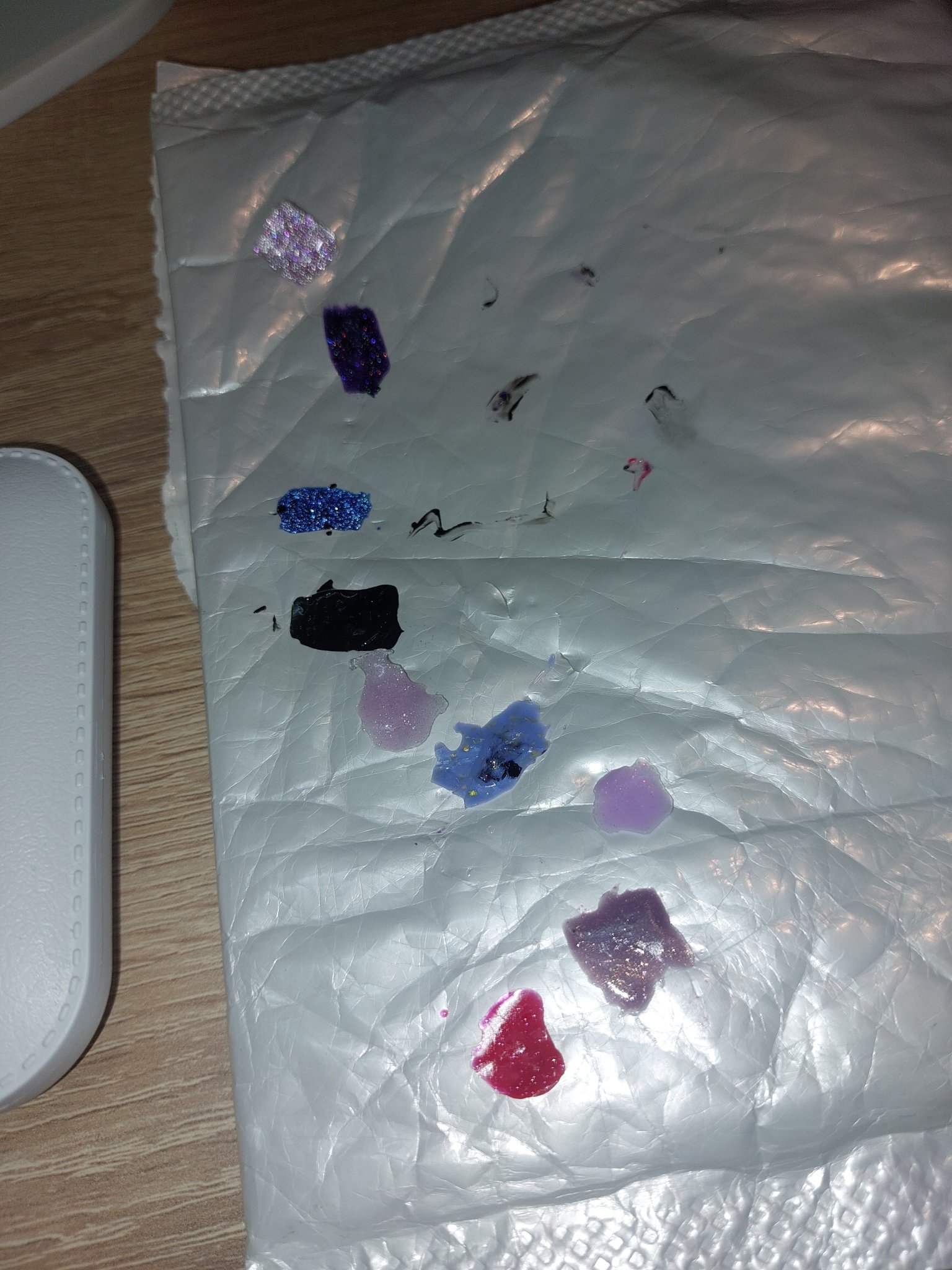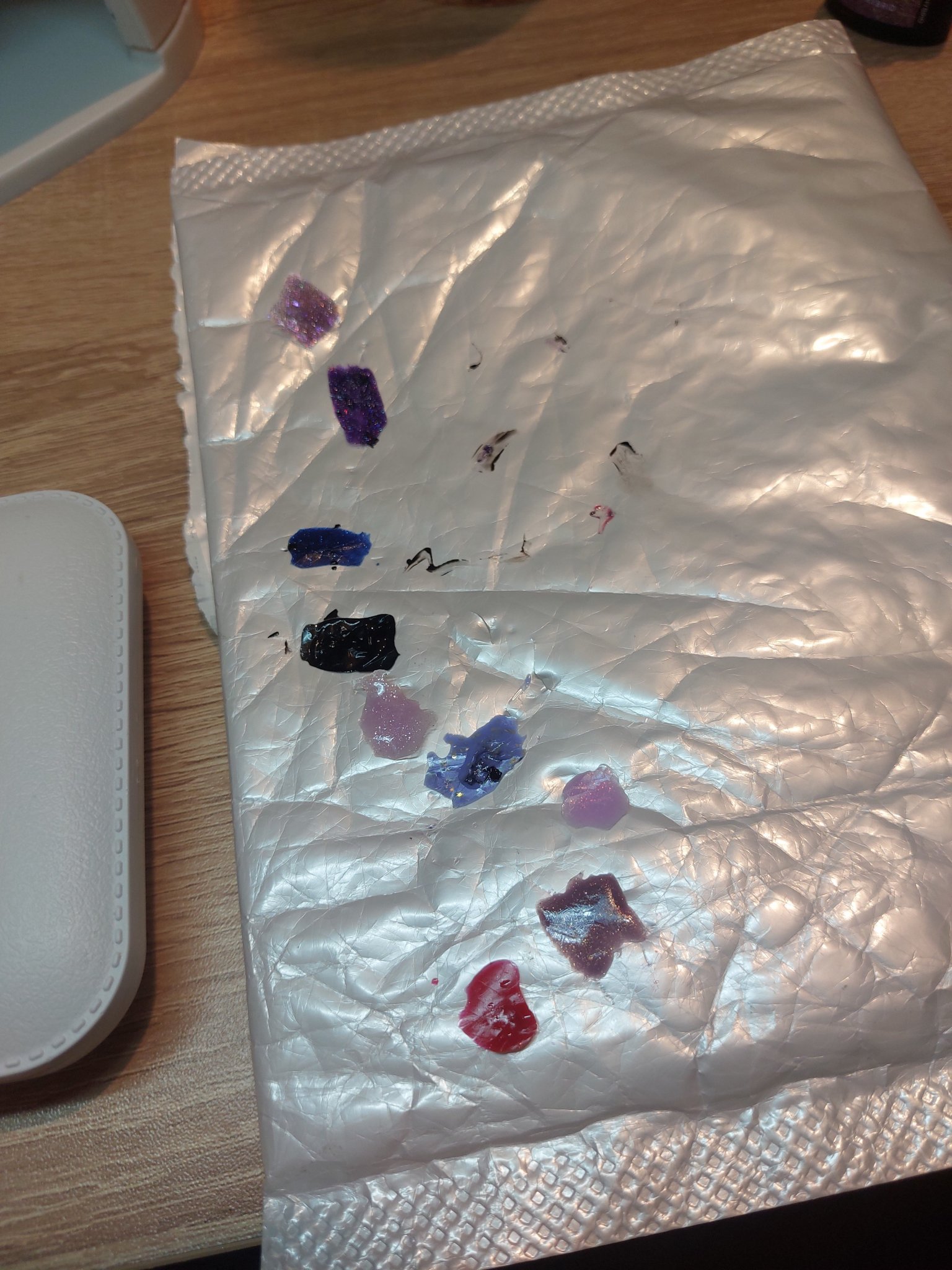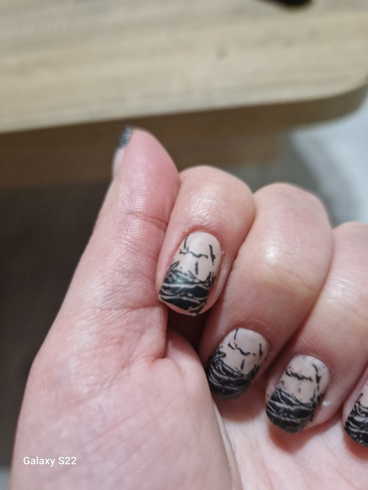 Но нали уж искам да си разходя повечето напоръчани неща, та реших междинно да плесна нещо отгоре, но преди това сложих тънък слой база на израстналото, за да няма лак по нокът. С този метод без мотаене може за около 30 мин да се обновите без много гимнастики, ако ви допада крайният резултат. Кожи не обработвах с пила, само избутах с римувър.