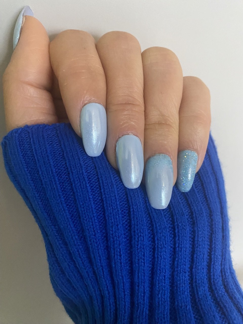 Аз пък снощи си свалих стария лак с идеята днес да се лакирам, обаче сутринта ми се счупи безименния, много странно, като отсен му падна върха, не под живеца както обикновено. Та сега съм в чуденка дали да му лепна един гел х и да прилича на другите или да скъся и променя формата на всички?