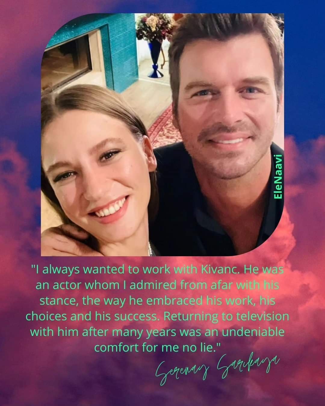 И - Знаеш ли, мисля, че не само аз, но и всеки, който се интересува от теб, знае колко специален човек си. Колко съм прав в това мнение се убедих от времето, което прекарахме заедно. Надявам се, че историята на този филм ("Качването на полета за Истанбул приключва“) ще бъде страхотна. Но имам някакво желание да вървя рамо до рамо с теб до края на живота си.