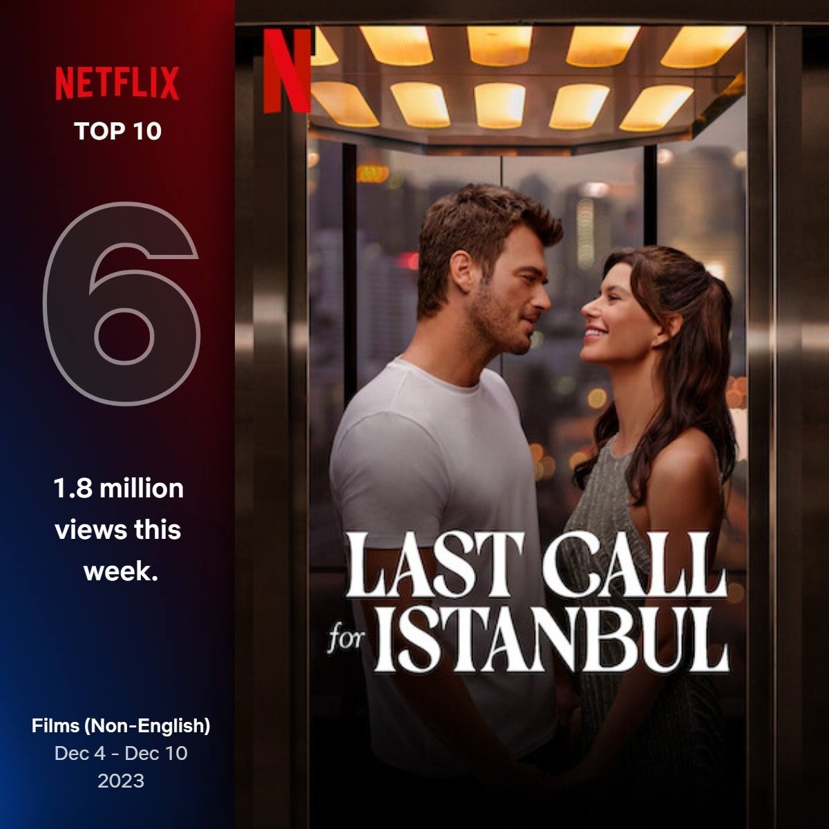 #lastcallforistanbul е в топ 10 (на 6-та позиция) 3 поредни седмици - общите часове на гледане за 3 седмици са 32 милиона 300 хиляди и е гледан от 21 милиона 300 хиляди уникални потребители.