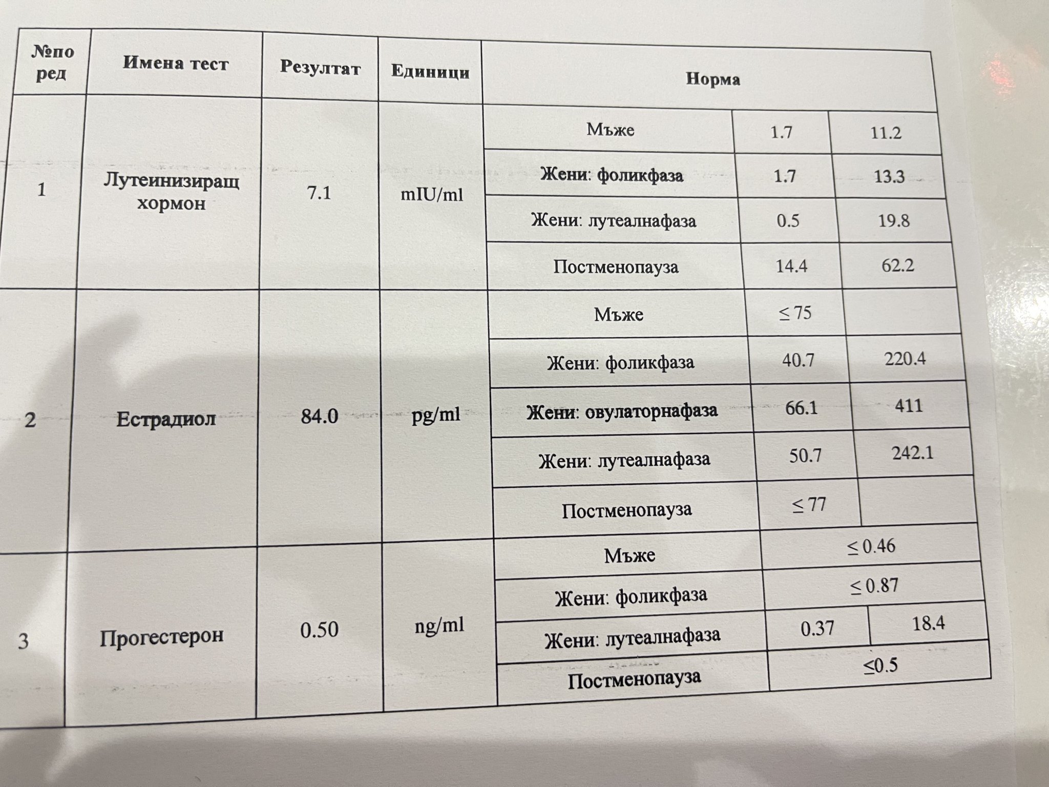 Благодаря ти за отговора. Не са ми правили все още цветна снимка. Щитовидните ми хормони са в норма, а от репродуктивните само тестостерона не е в норма (висок е).