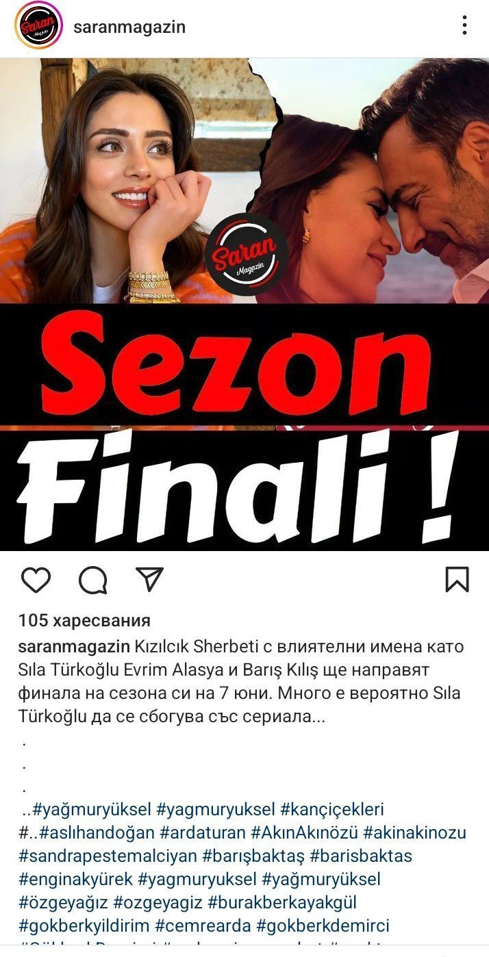 А за евентуалното излизане на Съла от Шербета, ако само ще въздиша по Фатих - по добре. Ноо... Излезе инфо, че продуцента на Шербета Gold Film готви нов проект за есента - Шапкарката и може да я гласят за главна роля там https://www.birsenaltuntas.com/dizi/kizilcik-serbetinin-yapimcisi-dizi/39940/