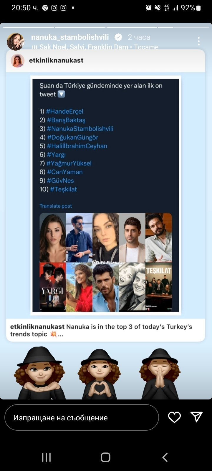 Не знам как и от къде се нареди в тази класация, но съм разочарована от този факт.Или може би са я класирали за това, че успешно съсипа един хубав  сериал като Emanet ? 🤷‍♀️🤷‍♀️🤷‍♀️