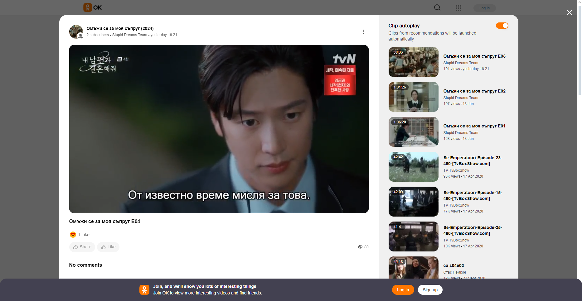 Аз съм с антивирусна, но нямам проблем с отваряне на сериали в ОК. Още преди месеци, когато сложихме на първа страница линковете за Кингленд, единия беше точно за ОК. Но при всеки опит да намеря друго заглавие с бг субтитри, не откривах. Излизат ми К-сериали, но без субтитри. Впрочем не знам каква им е връзката на двата сайта, но мен и Плейтюб, когато гледах Кингленд ме препращаше на същото заглавие в ОК. Ако попаднете на каталози със заглавия с превод там, дайте линкове.