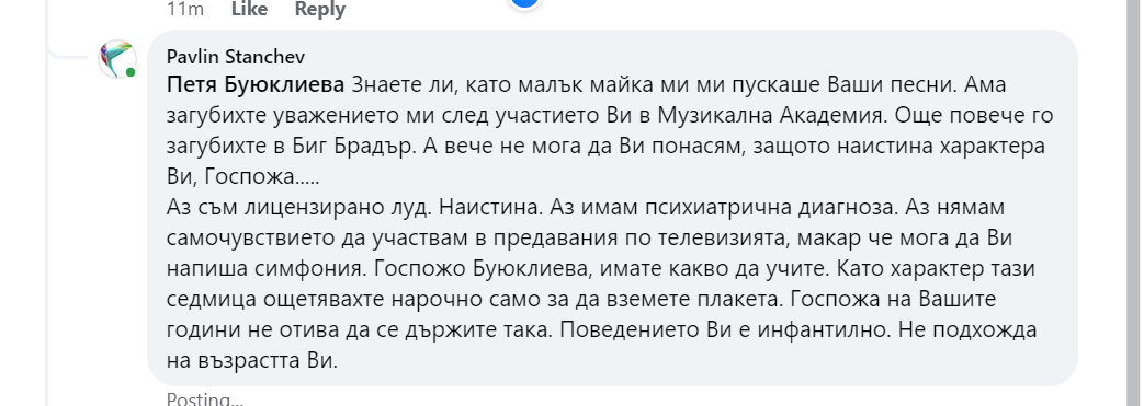 Написах и един вежлив коментар на Петя Буюклиева. Ххх. Дано се вразуми тази самозабравила се госпожа.