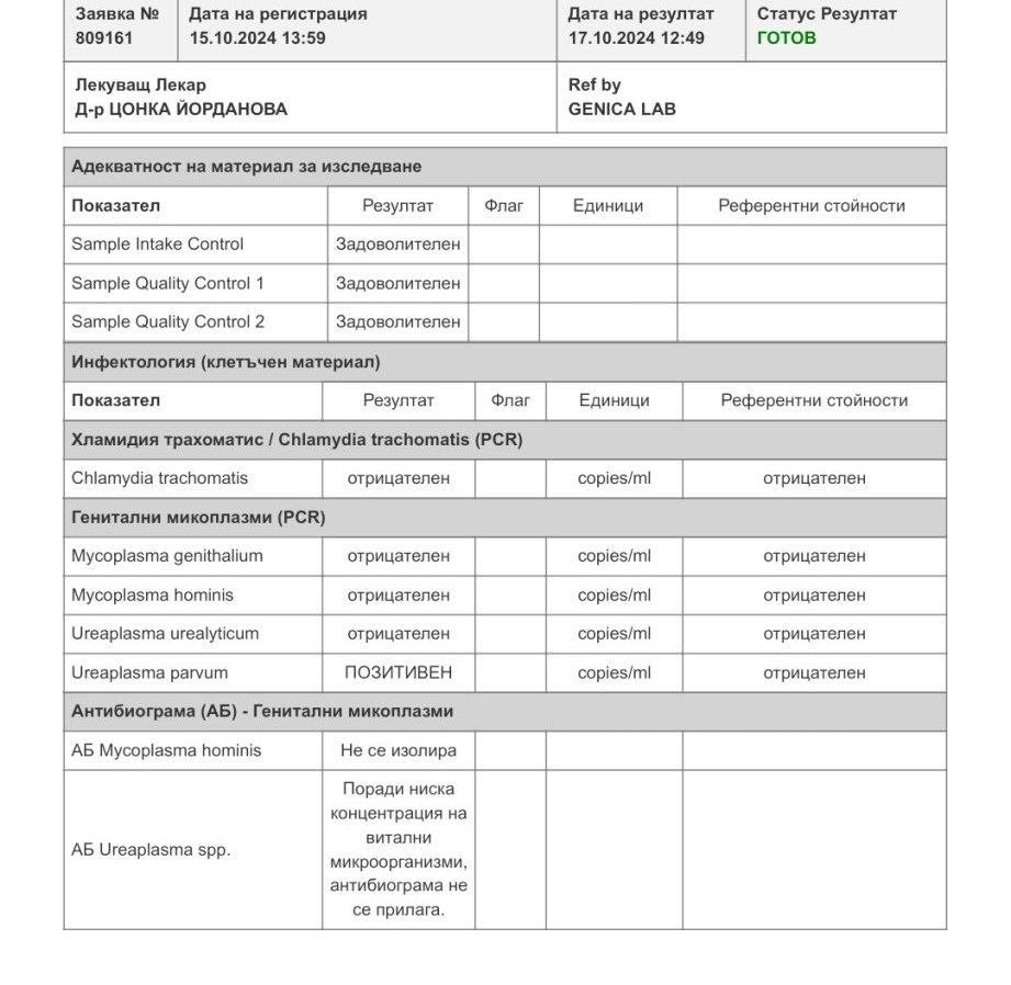 Какъв тест трябва да поръчам от лабораторията? Те казаха, че правят само PCR тестове и не могат да направят антибиограма. В Рамус има изследване на микробиология за уреаплазма и отделно пак PCR тест. Това означава ли, че е достатъчно само изследването на микробиология за уреаплазма?
