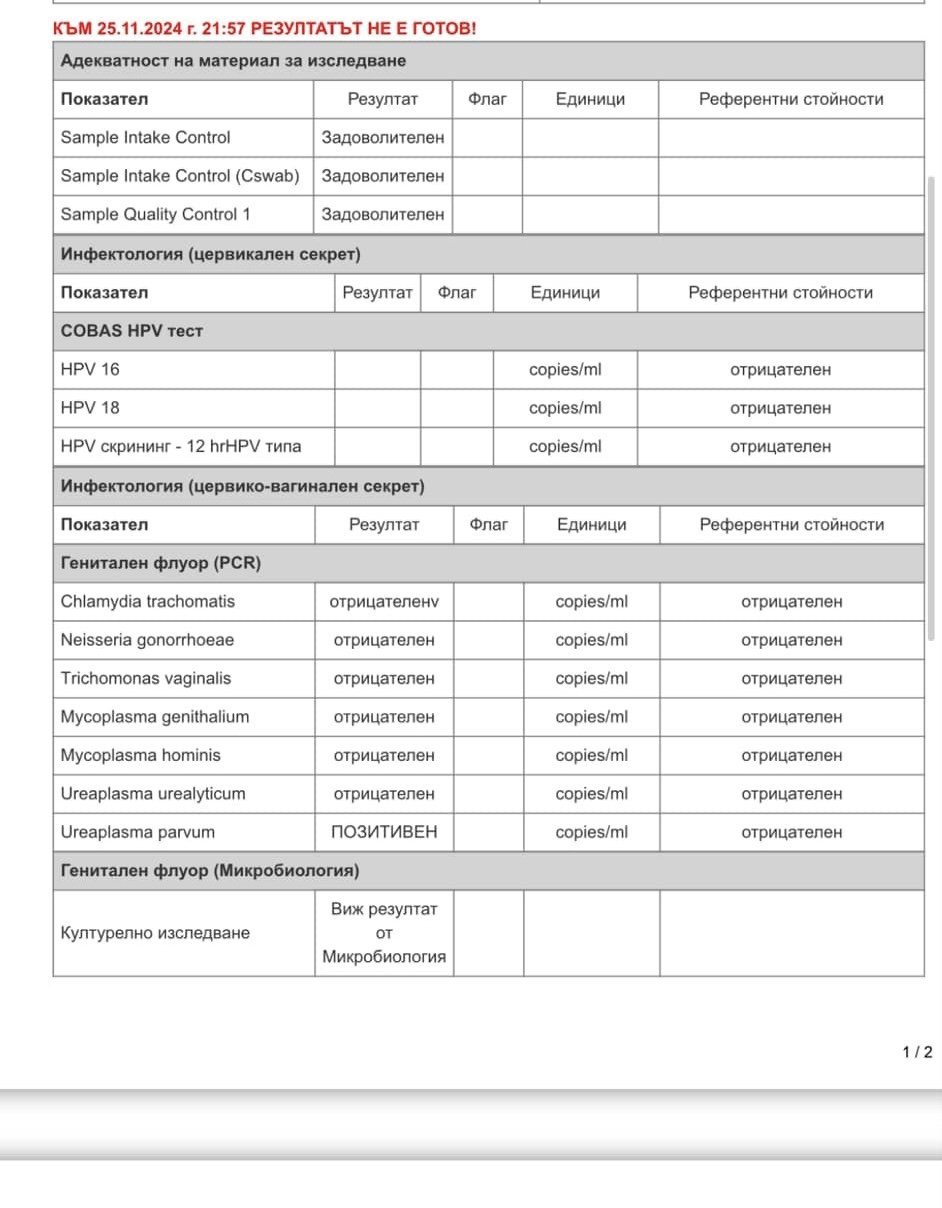 Резултати от HPV за отрицателни просто излязоха по късно и не съм ги снимала.