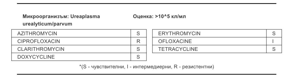 За уреаплазма и микоплазма. Да се надявам, че ще помогне.