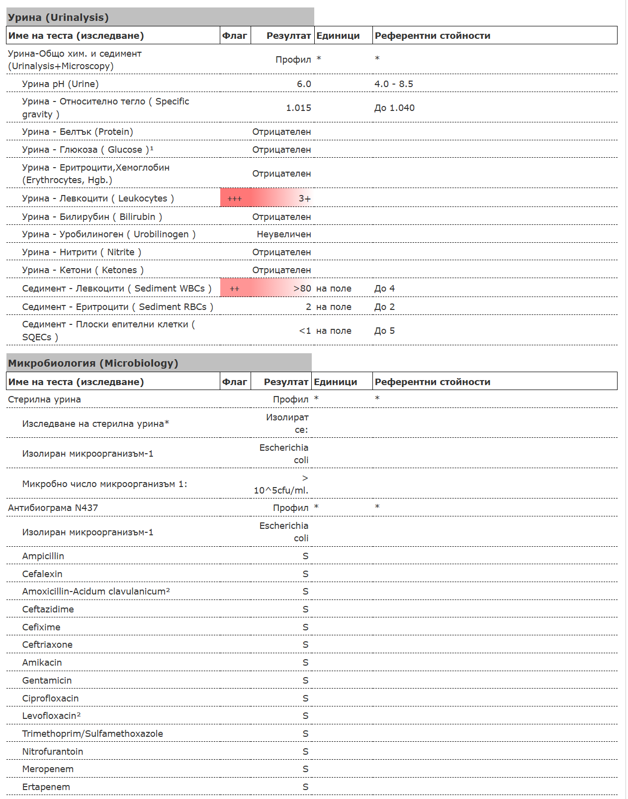 Обаче наистина ми намериха Ешерихия Коли. Досега не съм я хващала, няма идея отскоро ли е или преди просто не са я засичали, защото не съм правила изследването по време на самия цистит.
