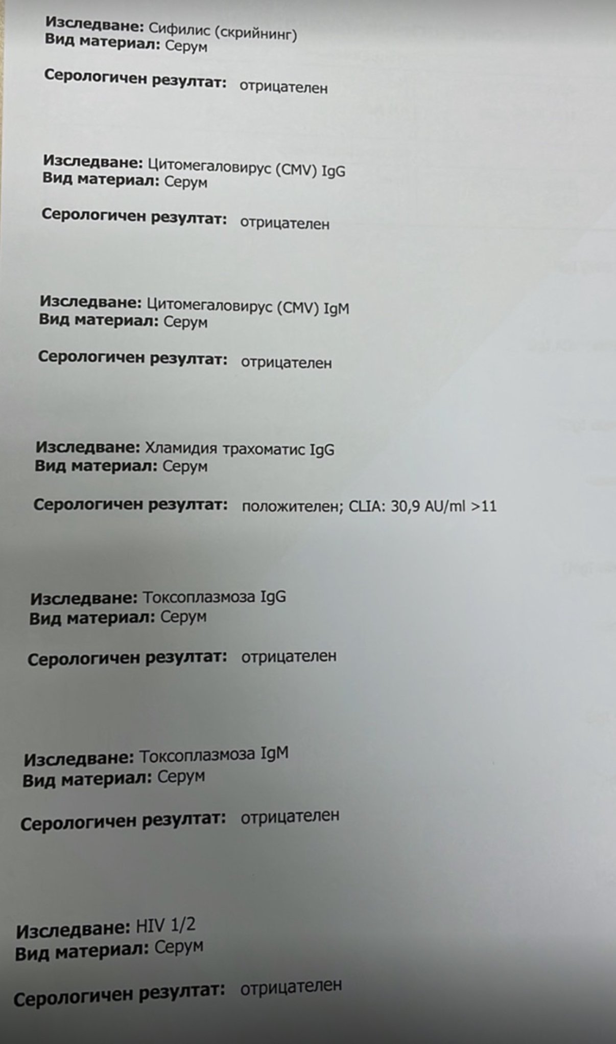 Отидох при инфекционист в четвъртък и днес той ми пусна тези изследвания за това нямам и другите беше по негова преценка 🤷🏻♀ Утре ще пусна и другите. Но се притеснявам от хроничната диагноза и също трябва за проверя уреаплазмата.