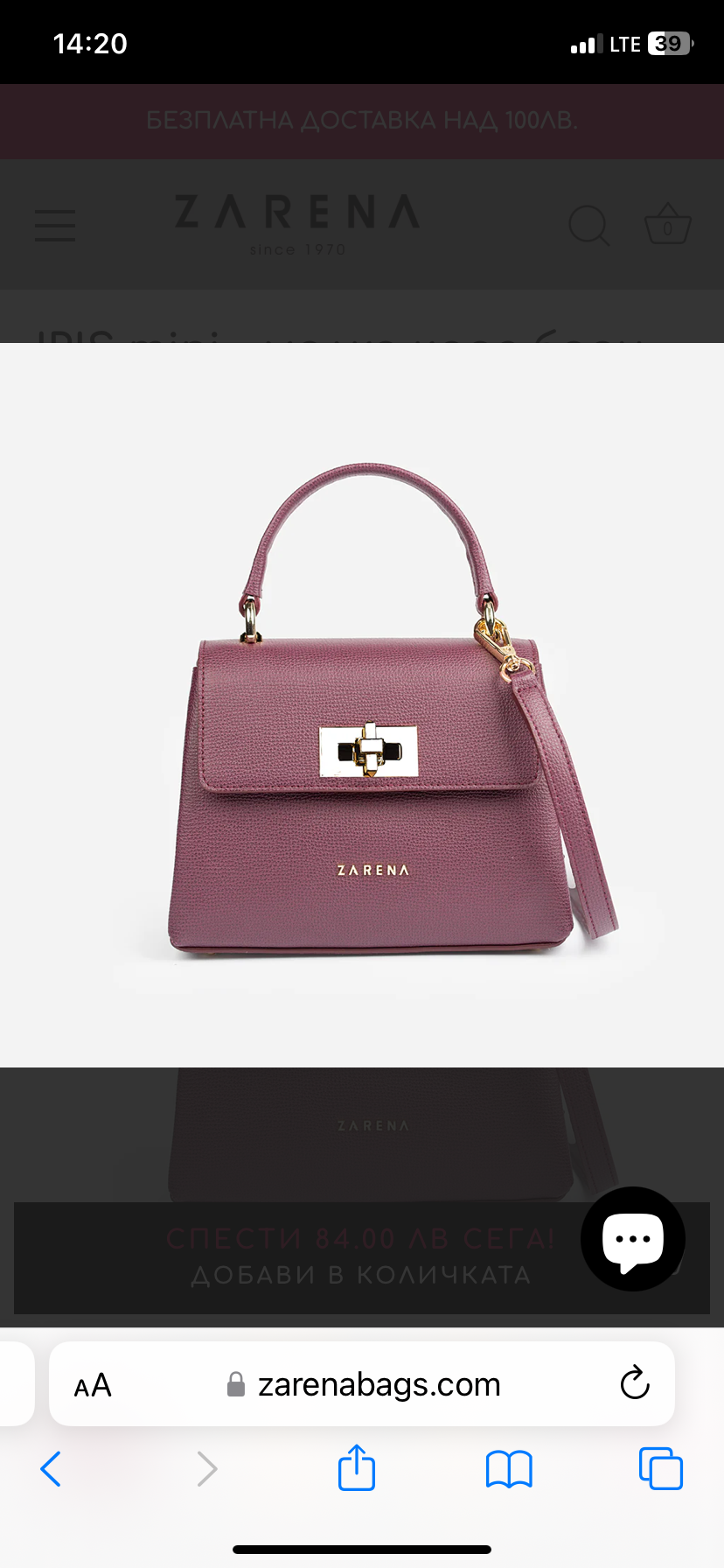 Аз имам тази , само че моята е бежова https://zarenabags.com/products/galia-chanta-za-ramo-kros-bodi-chervena и това е една от най-удобните ми чанти. Когато я взех преди една година беше 135лв и после й вдигнаха цената.