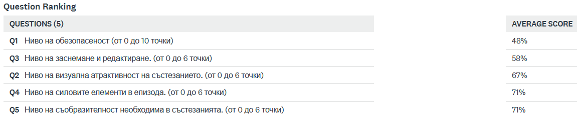 Гласуването за 3-ти епизод е вяло.  По обща оценка спрямо предишните епизоди е най-ниско досега .