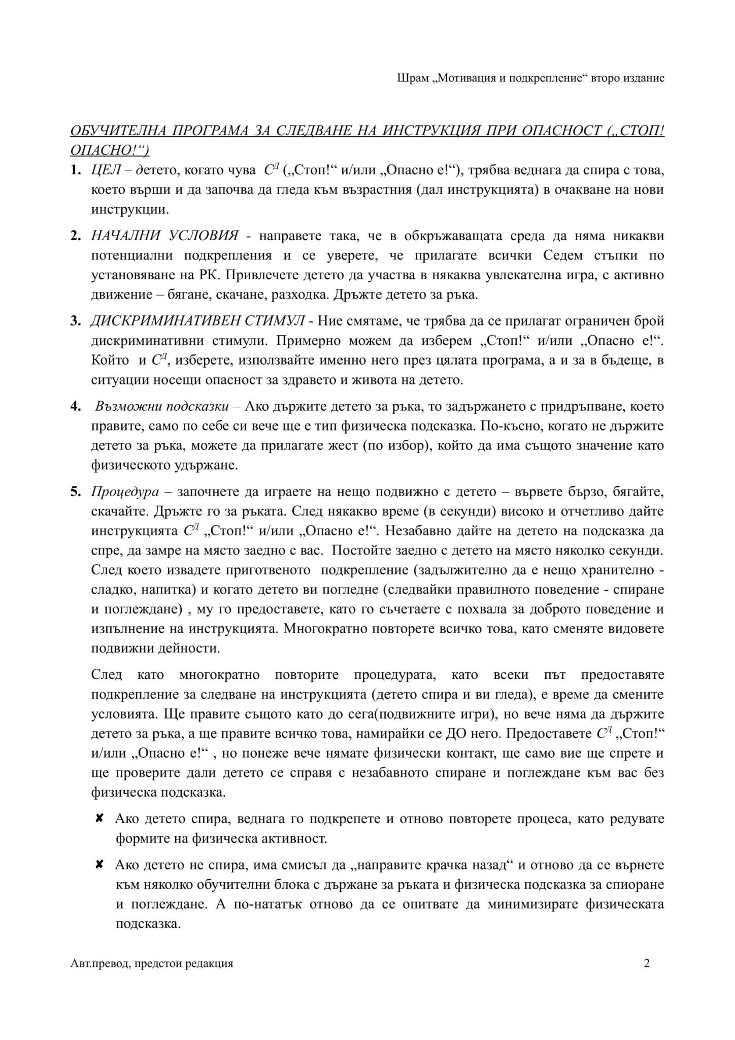 Публикувам трета обучителна програма на важни умения при деца с РАС  от книгата ма Р. Шр@м "Мотивация и подкрепление" . Тя е свързана с възпитание на адекватна реакция  у детето (спиране и поглед към възрастния) ако възрастният/родителят  дават команда за спиране,  защото има нещо , което е небезопасно за детето.