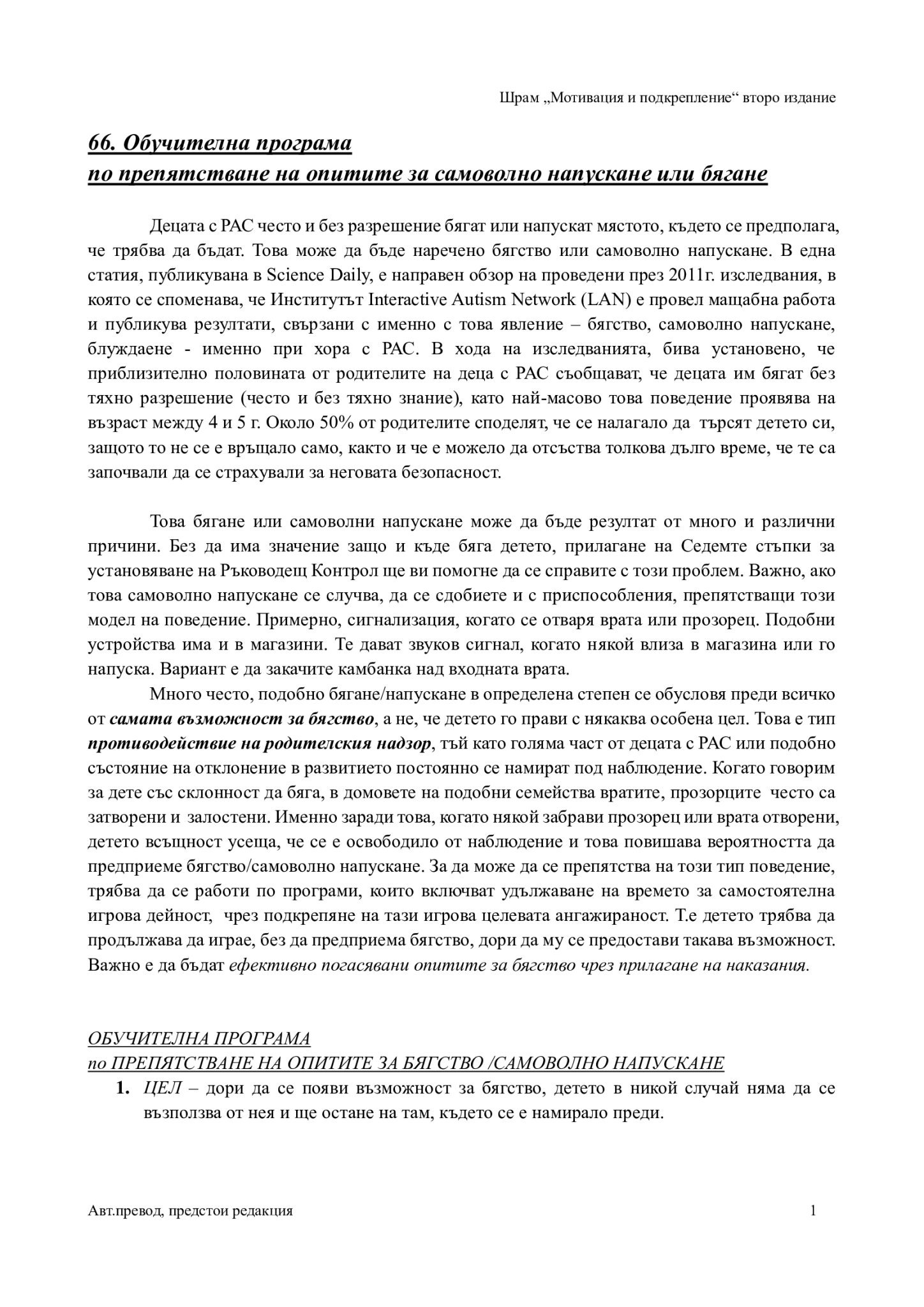 Поредната специфична програма , която публикувам,  от книгата Мотив@ция и Подкрепленie на Р.Шр@м, е свързана С бягането/бягството или самоволното напускане.