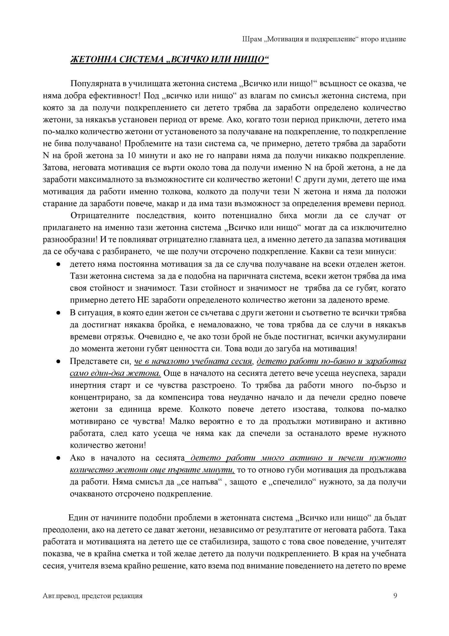 Продължавам с жетонната система или системата за отложено подкрепление  според книгата на Р. Шр@м Мотив@ция и Подкрепленie