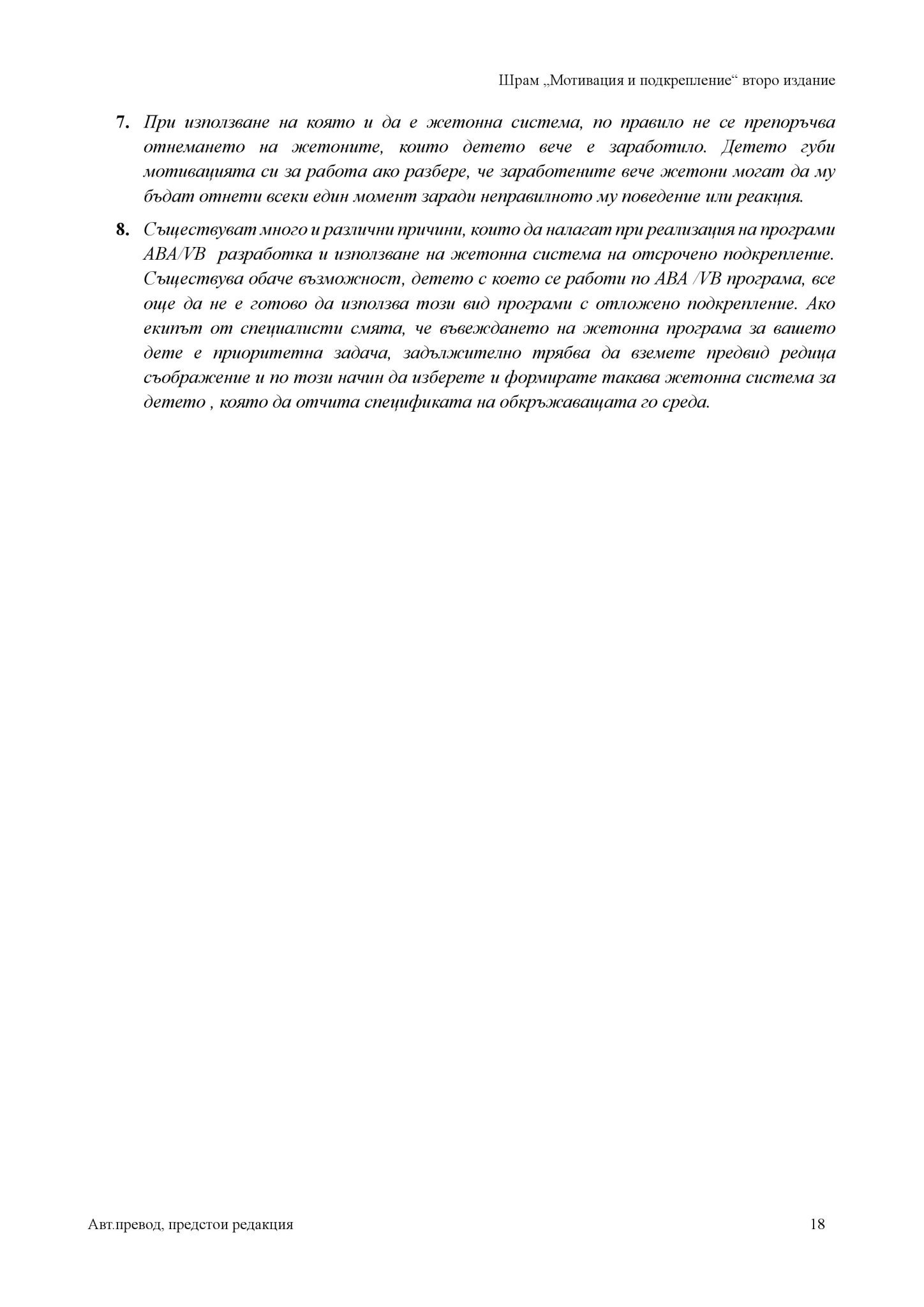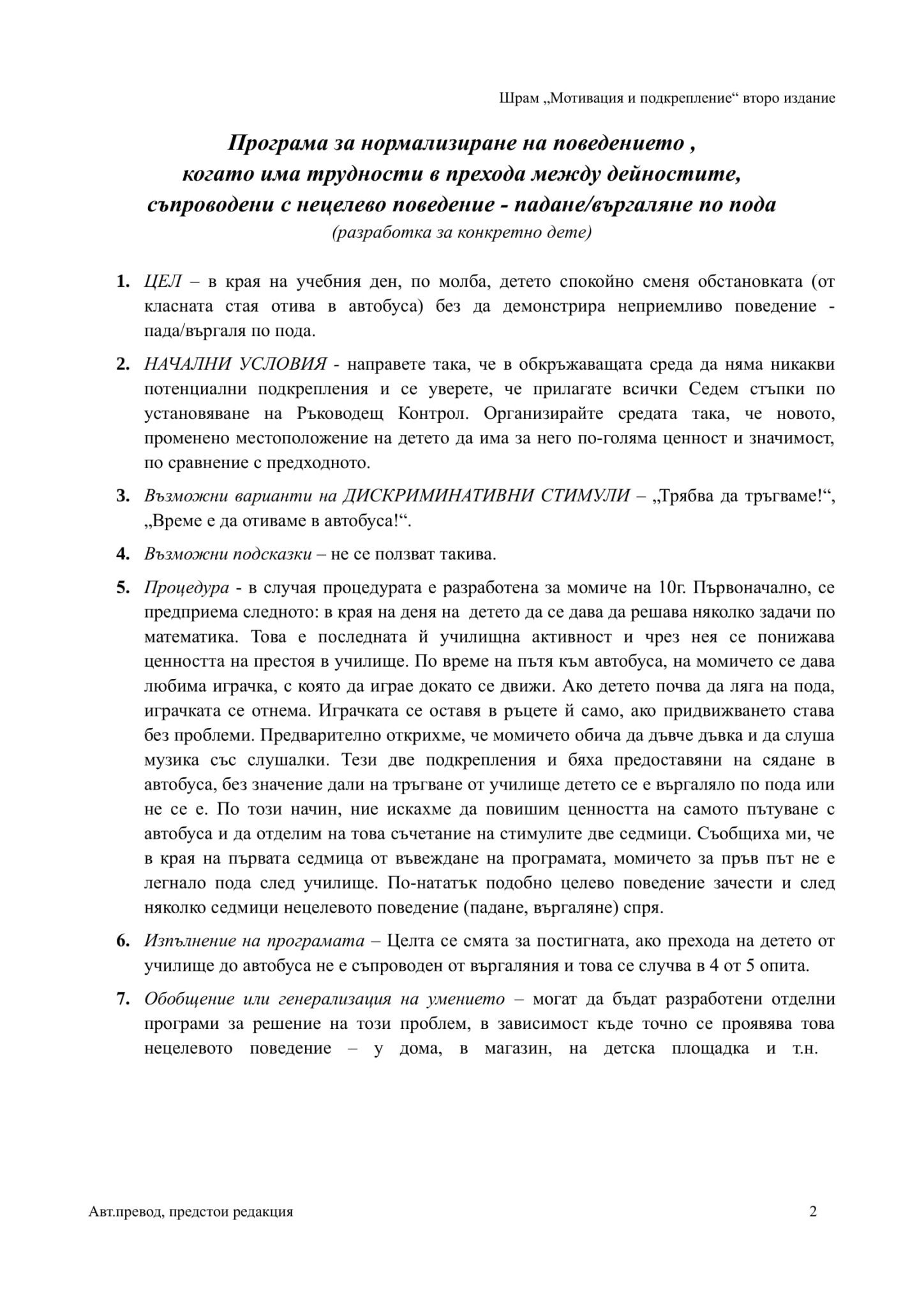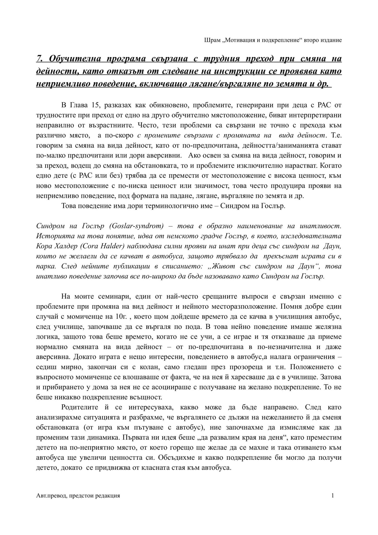 Последната от Обучителните програми, номер 7 , свързана с неприемливо поведение, което се случва, когато от детето се изисква то да смени типа и мястото на текущата дейност.