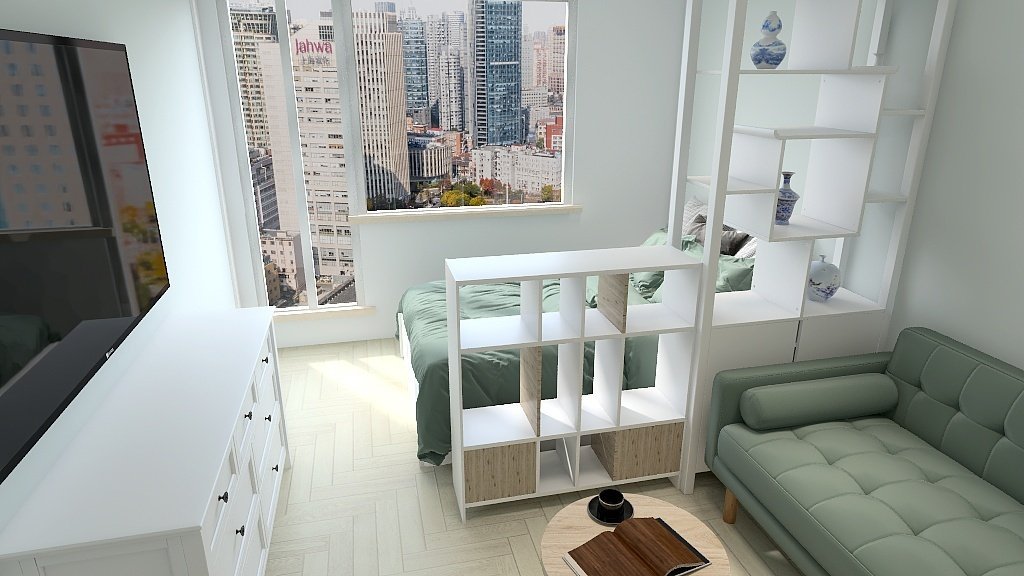 Може да стане и на спалния. Има и шкафове. Би ми свършило чудесна работа, ако наемателят е  един ще се спести пространство, ако са двойка просто става спалния, като има предвидено място. Чудя се дали е удобно.