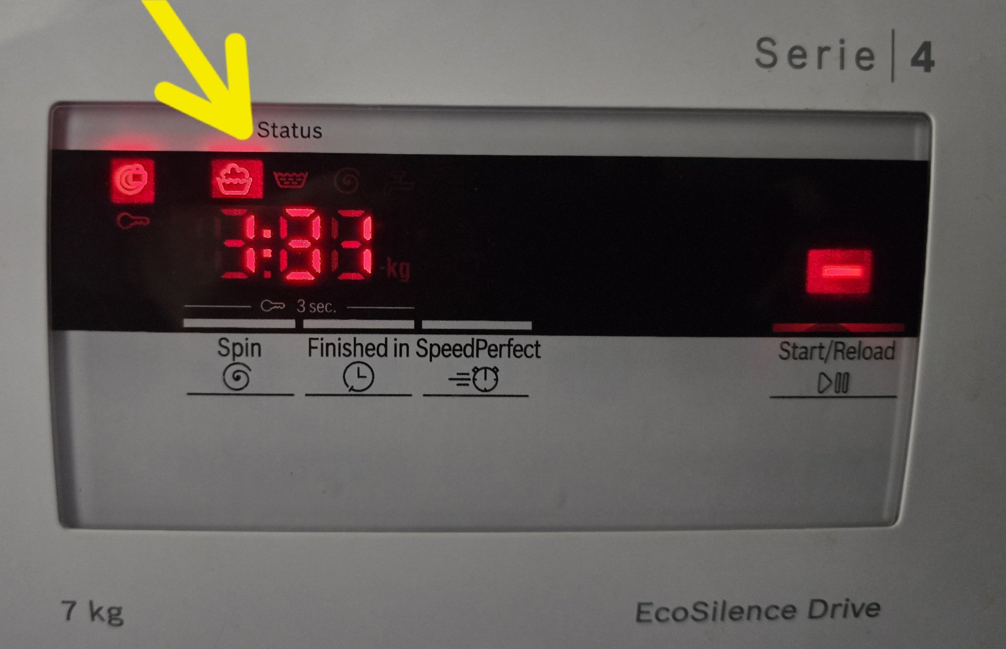 На пералнята ми се появи този символ, изглежда като нещо, означаващо ръчно пране. Гледах онлайн в ръководството, но не открих как се маха. Пералнята си изпира както трябва, като свърши я изключвам и при следващо пране на каквато и програма да е, пак го има на дисплея. Някой може ли да помогне и да каже какво е, и как да го махна?