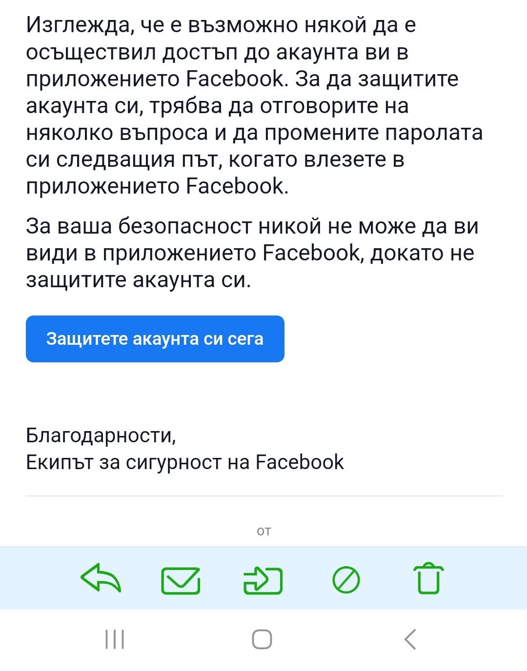 Тази сутрин при опит да влезна във фейсбук, ми изписа ,че профилът може би ми е хакнат