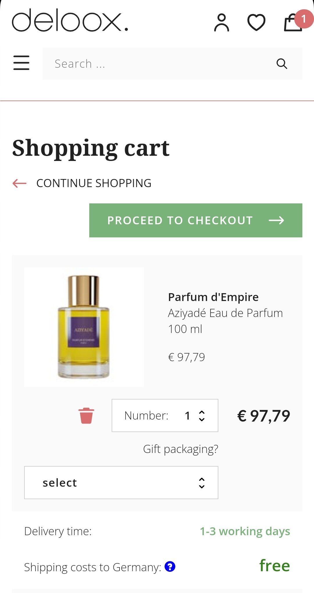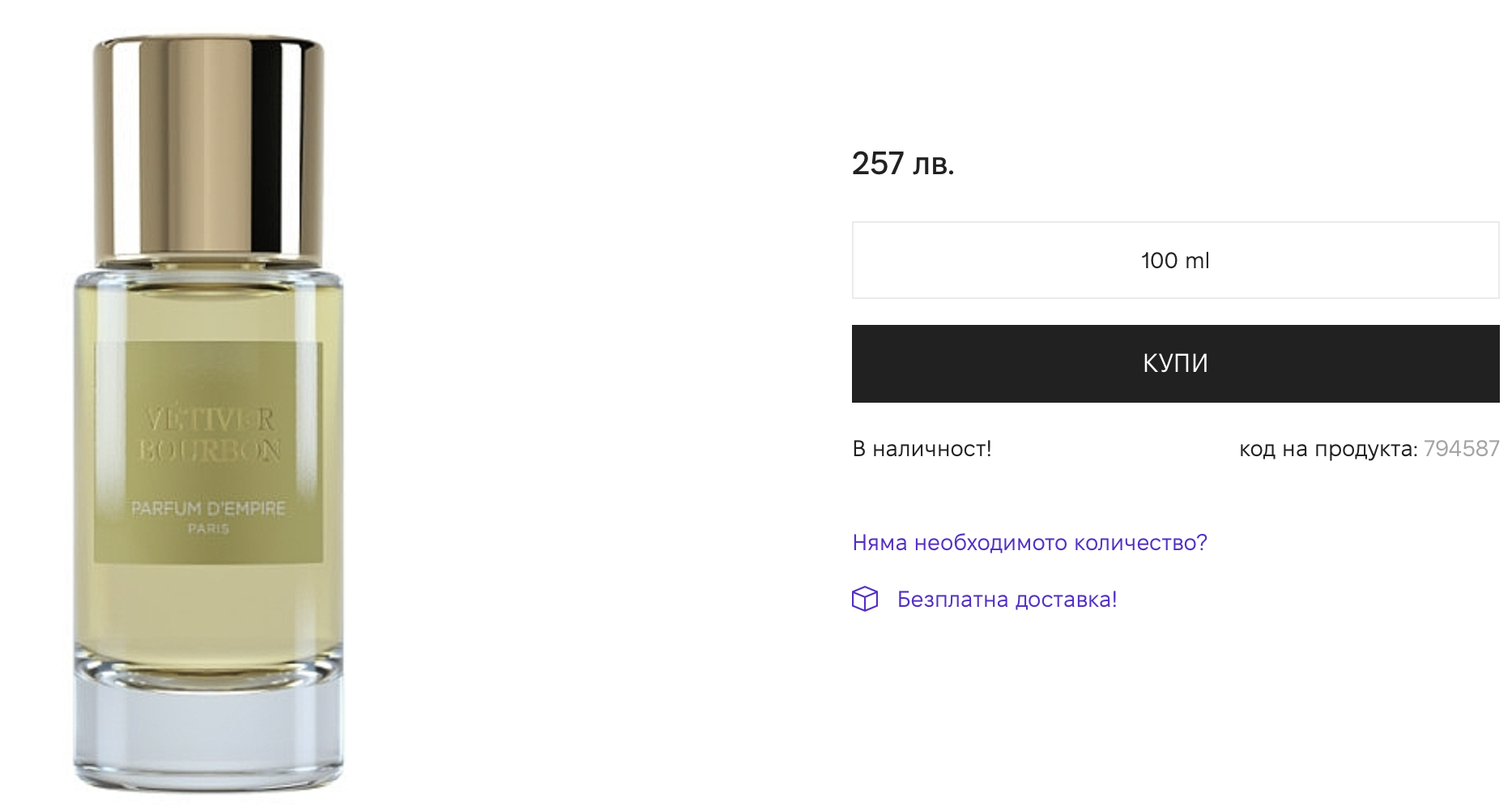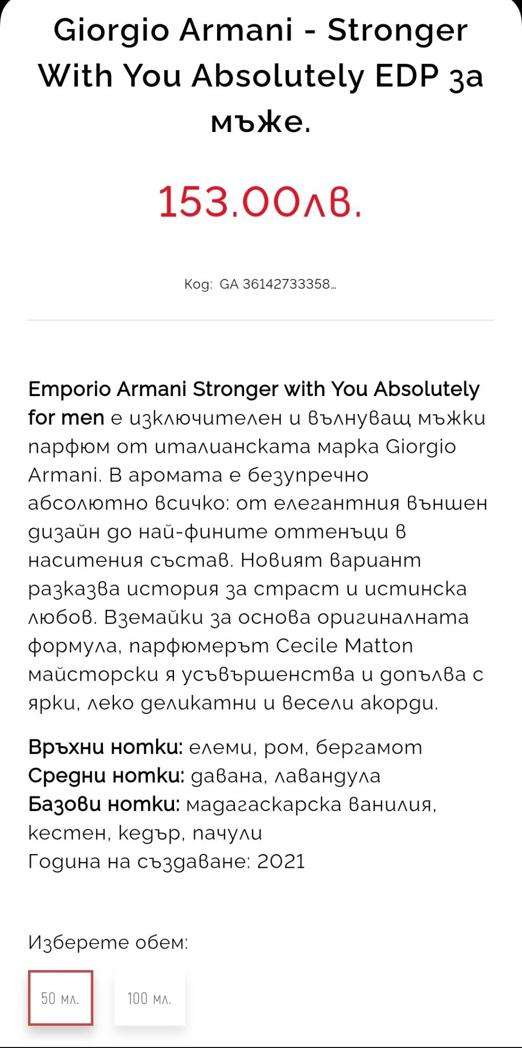 Кода работи, но не за всички продукти, за Nasomatto не работи, вероятно и за много други.