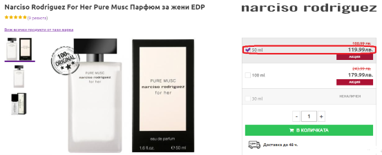 Narciso Rodriguez, Pure Musc, 50 мл - 119.99 лв, с кода - 108 лв
