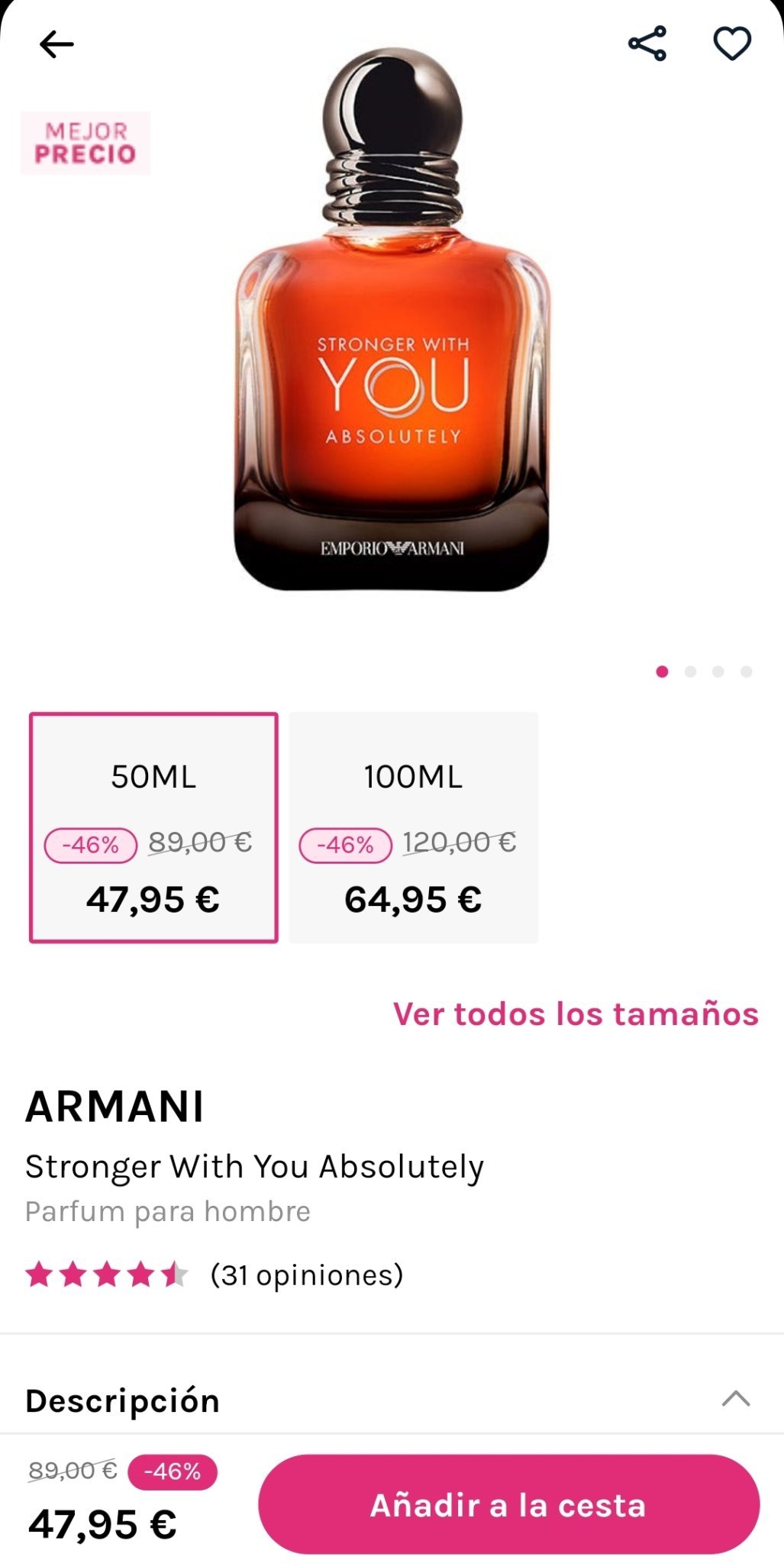 или Armani Stronger with You Absolutely от druni.es за ~100 лв. с превозвач до България.