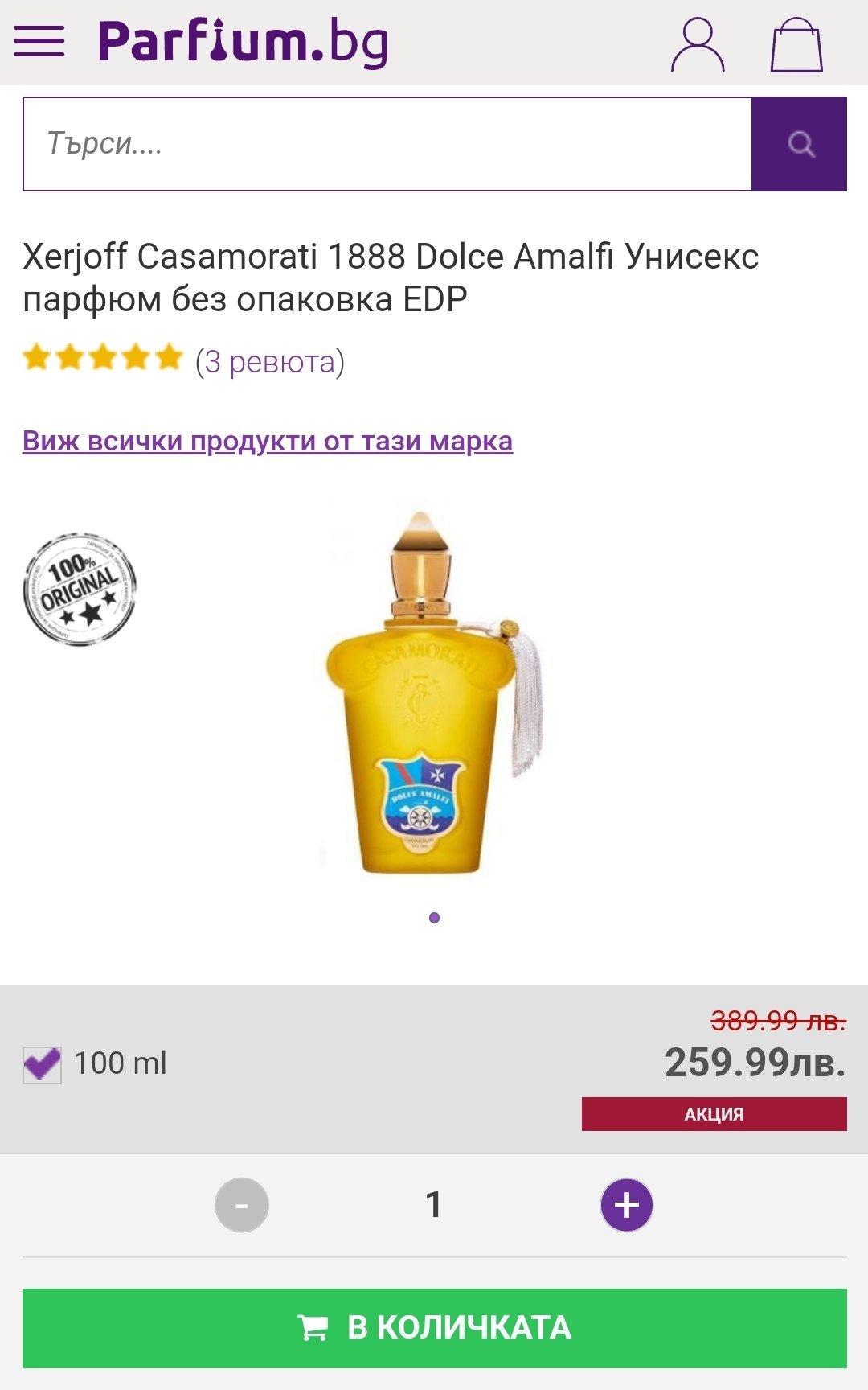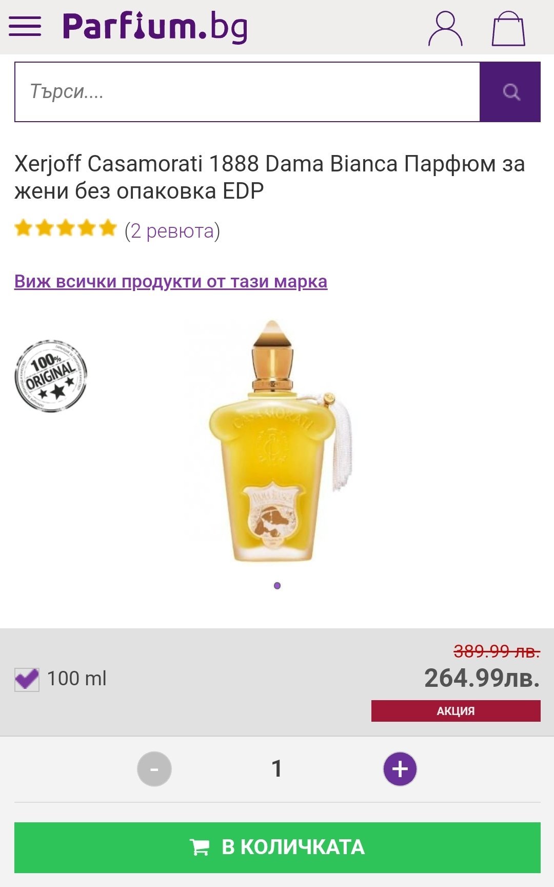 Цената е доста добра, реално 100 мл. на цената на 50 мл.