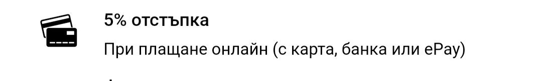 Може да се плати и с кредитни/дебитни карти на VISA и MasterCard.