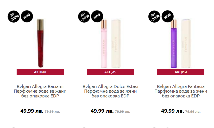 Цените са красноречиви - няма как парфюм, който струва 500лв примерно, да е намален на 170 -визирам МFK Oud Satin Mood.
