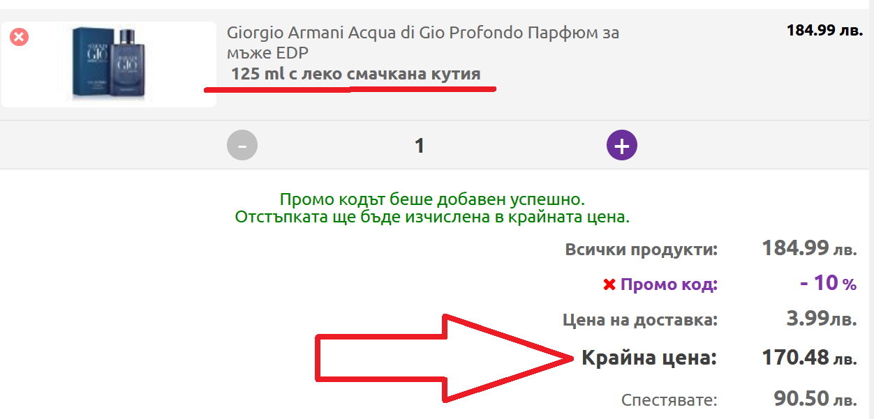 Аз така и не получих потвърдителен имейл, след като поръчах във вторник. Кодът ми за отстъпка беше валиден, но не беше отчетен. Обаждане дали ще изпълнят или не поръчката също нямам, но няма и да ги търся.