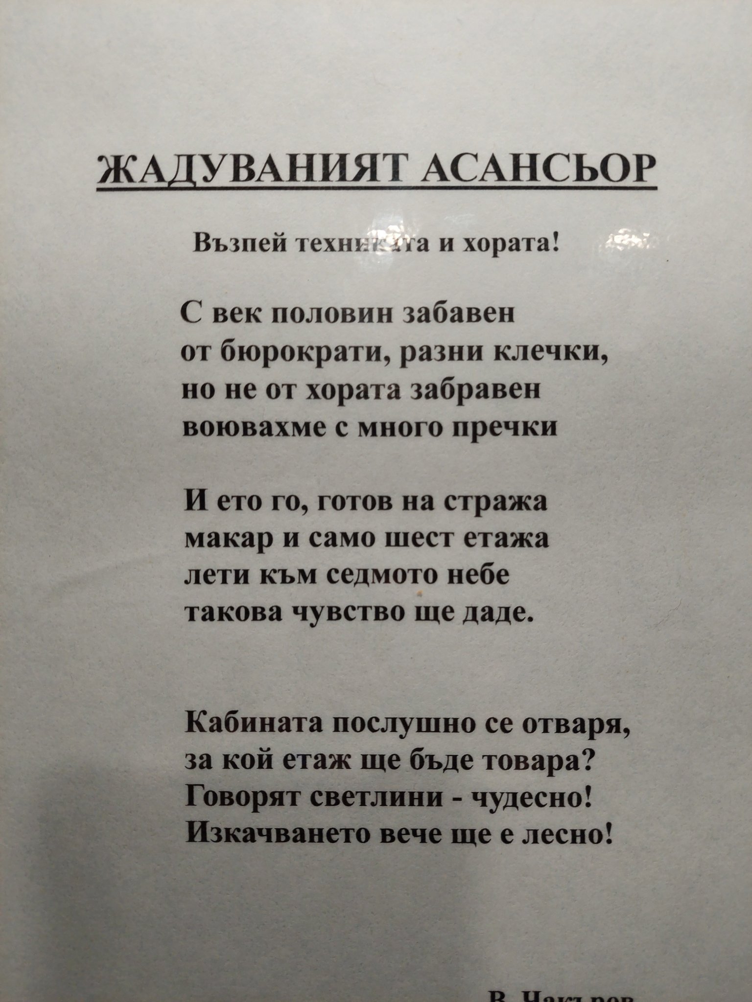 Качвам творчеството на един съсед ,живеещ като мен на последн етаж,след като си сложихме асансьор Simple Smile Направо като "Топло'" си беше,но не за парно ,а за ...