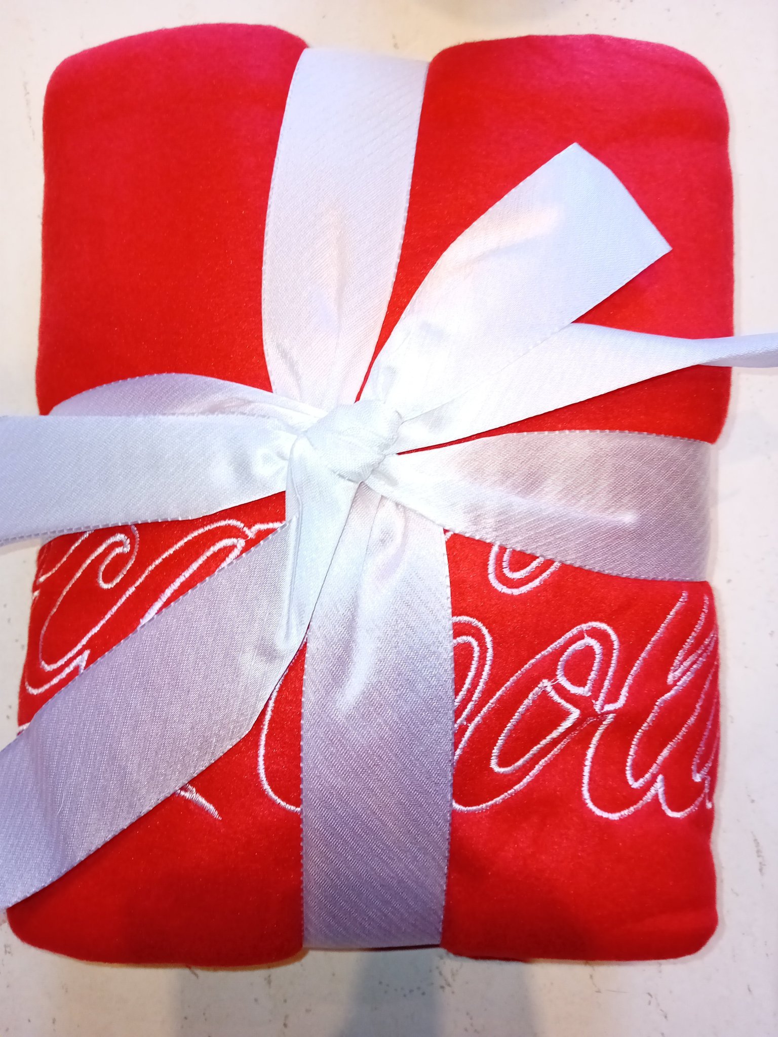 Пристигна одеалото от кока кола. По-малко е от обикновено одеало, но сега нямам с какво да измеря.