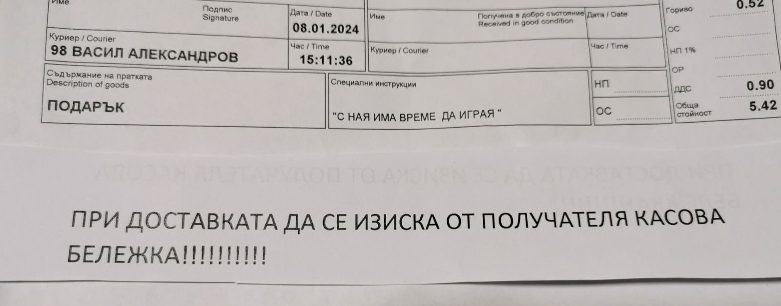 Моя коментар е свързан с това, че тази снимка беше качена в темата и казаха, че куриера не е написано кой номер да вземе.