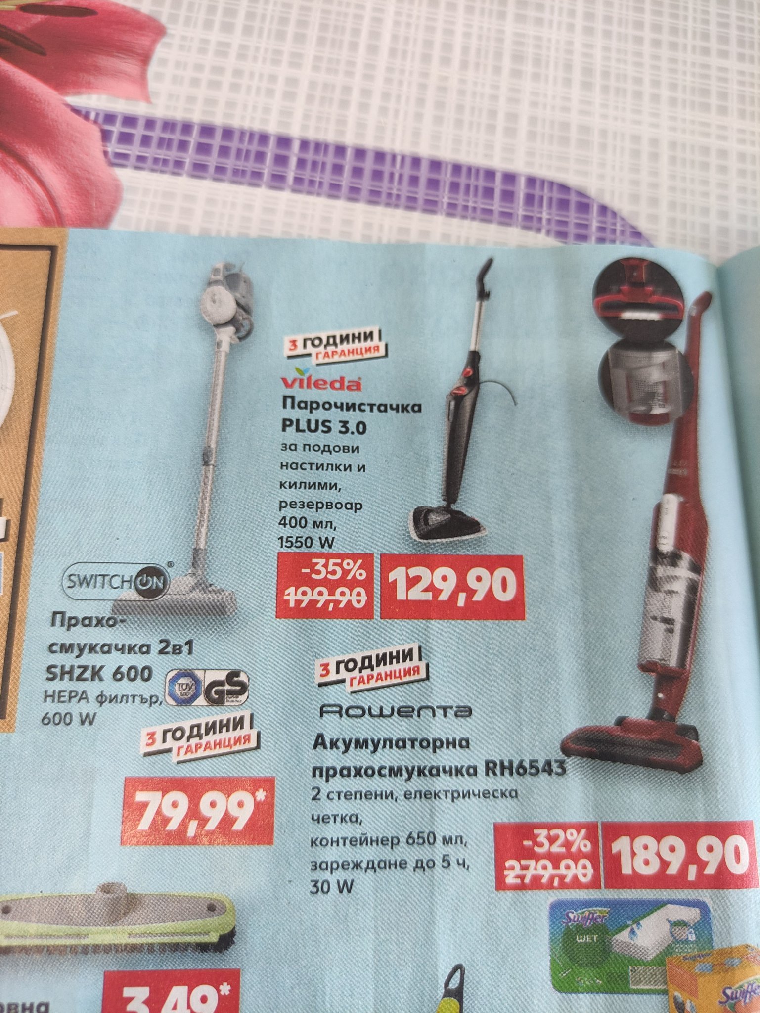 Някой има ли мнение за една от двете вертикални прахосмукачки - Суитч он или Ровента от новата брошура? Трябва ми за ежедневна употреба, но имам и килими. Нямам домашни любимци. По принцип имам перяща Зелмер, но ми е много тежка постоянно да я вадя.