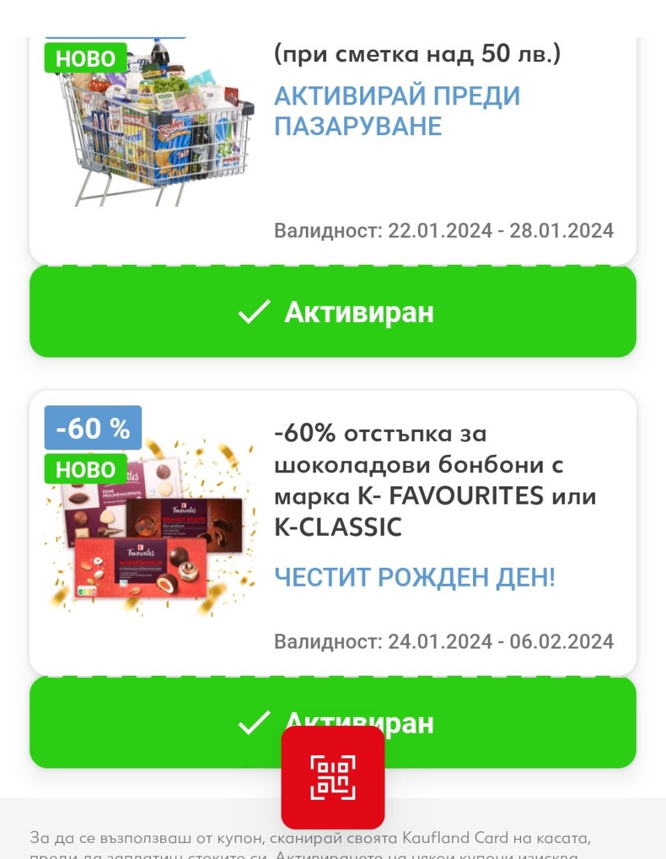 Някои ако ще купува бонбони имам купон за РД, имам и за отстъпка 2лв при покупка над 50лв, и двата купона са активирани. Ако има желаещи да пишат на л.с.