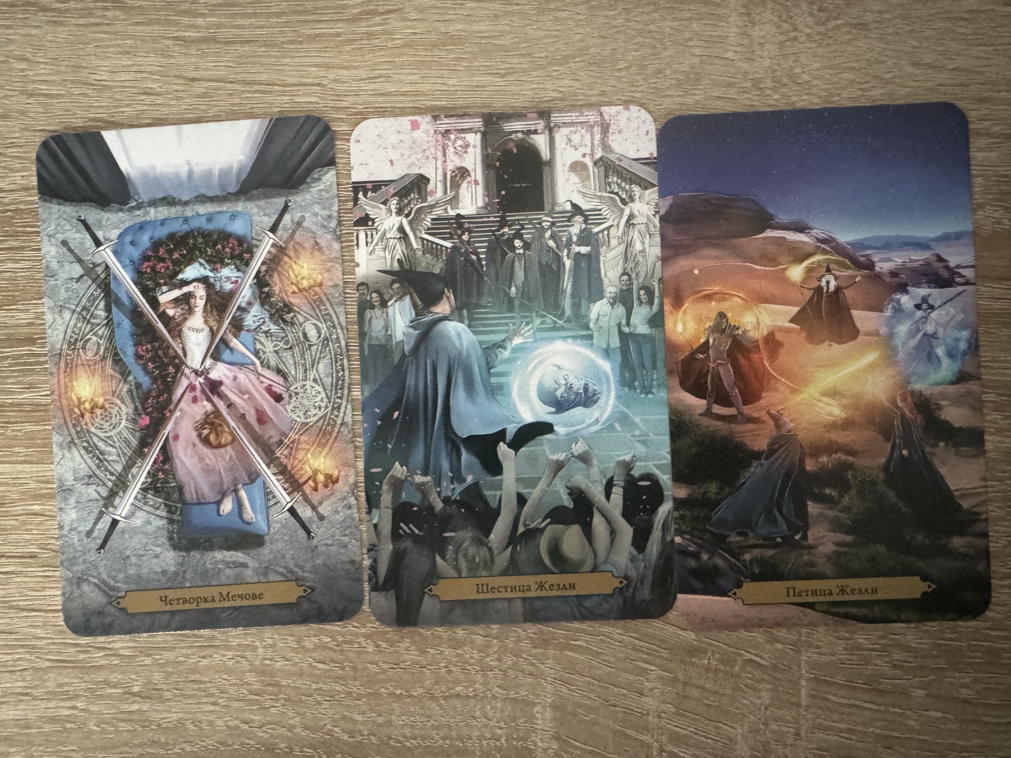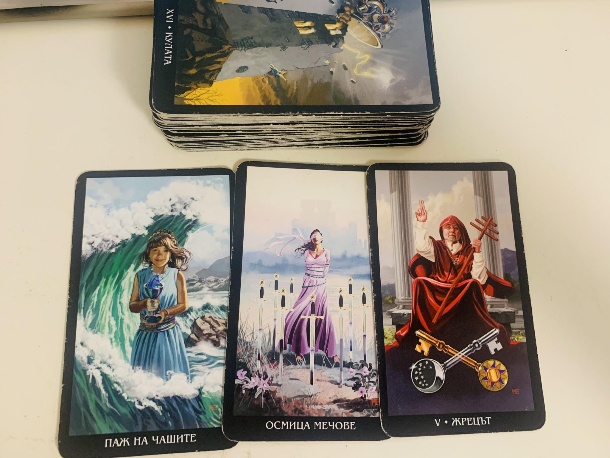 Ивка, прекарвай повече време с картите. Както са ти казали, тегли всеки ден една - хем ще ги опознаеш, хем ще видиш дали и как се проявява. Но пък и се пази да не влезеш в омагьосан кръг да не правиш нищо беез да се допиташ до тях. В крайна сметка това е просто инструмент - лично аз мен, повече за прочит на човека, а не на бъдещето.